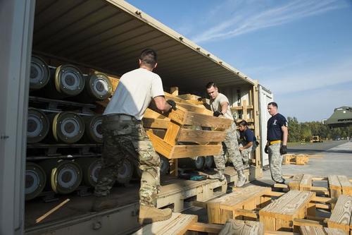 Официјалната веб-страница на американските воздухопловни сили, af.mil, објави дека Рамштајн воздухопловна база во Германија добива најголема испорака на муниција во последниве  20 години. Портпаролот на воздухопловните сили изјави за необичната големина на пренос на муниција: “Ова е најголемата пратка од ваков вид од операцијата Сојузнички сили, која се одржа во 1999 година” според af.mil.