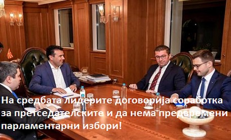 На средбата на прочка на која лидерот на ДПНЕ отиде како глувчето Мице додека пола партија му ја испоаспија најважна и од медиумите скриен информација беше дека двете корумпирани политички врхушки уплашени од гневот на народот се догoвориле ДА НЕМА ПРЕДВРЕМЕНИ ПАРЛАМЕНТАРНИ ИЗБОРИ! Сето друго изјави за создавање “работни” комисии, “кристално” чисти избори, од корумпираните елити кои и децата би си ги продале за власт само ја потврдува спрегата на отуѓените врхушки на СДС-ДПНЕ од народот и нивното скоро заминување од политичката сцена а богами за некои и простување со слободата.