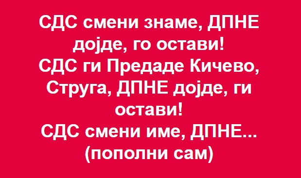 Да, доаѓаат, но вас како партија и вашиот коалиционен партнер сдсм ќе ве прегазат, од вас ќе остане само бледа дамка на истрошениот македонски асфалт. 28 години македонскиот народ го возите во еден правец, во неповрат. И при секоја смена на шоферското столче вие или вашиот коалиционен партнер ветувате промени. Ветувате промени без да кажете какви тоа промени? Доста ни е од вашите промени, каде е свртувањето кон подобро, тоа никако да се случи. Еве и денеска пак ветивте празни замаглени нешта, но народот знае што треба.