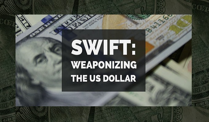 И со Европа која исто размислува за алтернативи на СВИФТ, со цел да ги одржи финансиските односи со Иран, во светло на исклучување на Техеран од монетарниот систем базиран на доларот, по ставањето на Трамп на ирански санкции. Ова ќе предизвика голем удар за резервниот статус на американскиот долар доколку Брисел најави дека тоа, исто така, ќе се приклучи или на кинеската или на руската алтернатива на доларска хегемонија. И тоа