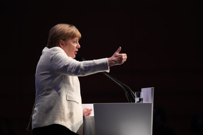 MUNICH, GERMANY - MAY 24: German Chancellor Angela Merkel (CDU) speaks at a joint CDU/CSU (German Christian Democrats and Bavarian Christian Democrats) election campaign rally on May 24, 2019 in Munich, Germany. Voters in European Union member states are going to the polls until May 26 to elect a new European parliament. (Photo by Andreas Gebert/Getty Images)