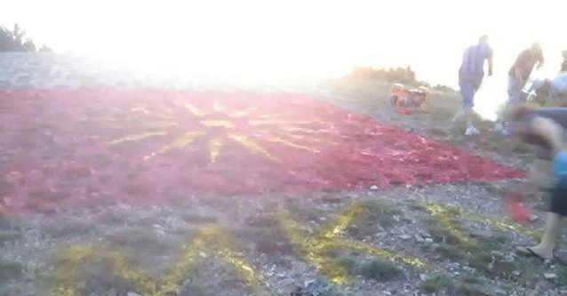 Сонцето досега никој не го згаснал а не пак една рака корумпирани однадвор поставени квислинзи! Почна Битката за Враќање на Македонското Сонце во Секој Агол на Македонија! Приклучи се! Вчера, 21ви Јули, по повод роденденот на Александар Трети МАКЕДОНСКИ, еден од тимовите на патриоти го отслика македонското знаме под Водно!