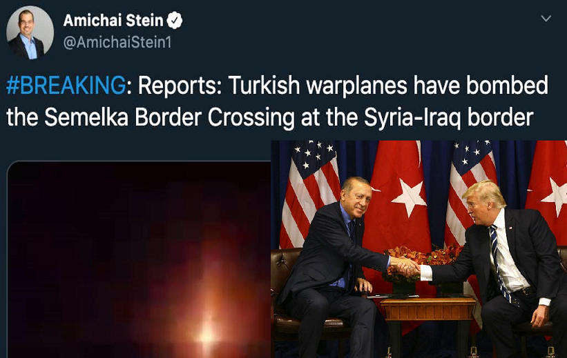 #BREAKING: Reports: Turkish warplanes have bombed the Semelka Border Crossing at the Syria-Iraq border