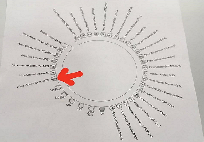 Во реакцијата на РОДИНА МАКЕДОНИЈА го прашуваат премиерот на нелигитимната Северна, инсталиран од западна странска служба, кој седна на столче кое беше означено со кратенката (NOM) и од ЕУ/НАТО корумпираните папагали од СДС/ДПНЕ да објаснат. Која е таа земја северно од Македонија која седи на НОМче Столче во НАТО, Господа од НАТО/ЕУ нема алтернатива?
