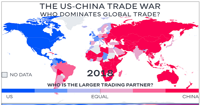 Резултатите острo и безмилосно ја оцртуваат промената: До пред 2000 година, САД беа на чело на глобалната трговија, и над 80% од земјите тргуваа со САД повеќе отколку што тргуваа со Кина. До 2018 година тој број нагло на нации кои главно тргуваат со САД опадна на само 30% откако во овој период Кина брзо ја зазеде врвната позиција во 128 од 190 земји.