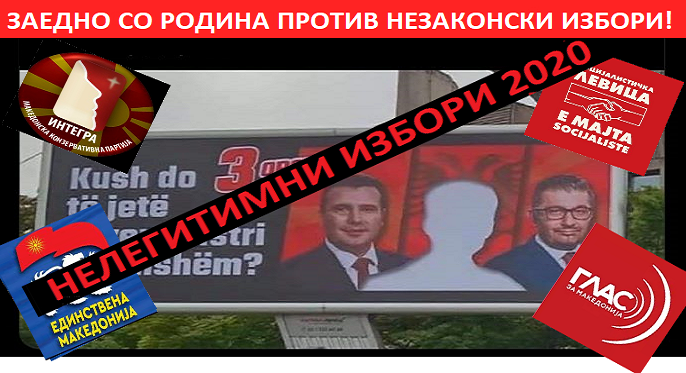 Грубото кршење на изборната процедура и одржување на избори во услови на 5 последователни вонредни состојби, под маски, психоза и страв од „опасниот“ вирус, се само избори во служба на истите сили кои ја урнаа Република Македонија!