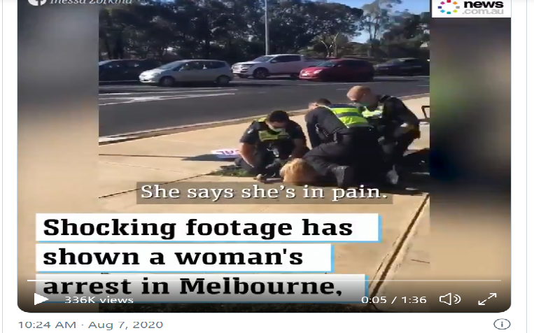 Во написот, Писма од Мелбурн: „Градската Полиција во Лов на Духови“ со брутално заклучување под превез на KОВИД, авторот Роберт Бриџ преку Фондацијата за стратегиска култура, го опишува страдањето на жителите на вториот најнаселен град во Австралија во најтешките услови за заклучување. Граѓаните на Мелбурн се сега затвореници во своите домови за идните најмалку 6 недели, полицијата е овластена да ви влезе дома без налог, се кршат прозорци на автомобили и патниците се влечат надвор ако не се “послушни”, луѓе брутално се апсат низ градот со полициско колено на вратот (главна фотографија) во стилот на Џорџ Флојд, и насила им се ставаат узди, пардон маски, на лицата. Во написот обемно е цитирана и нашата голема патриотка, Македонката Аника Стојковски, жител на Мелбурн и позната во Македонската јавност по учеството во протестите и отпорот против промена на името!